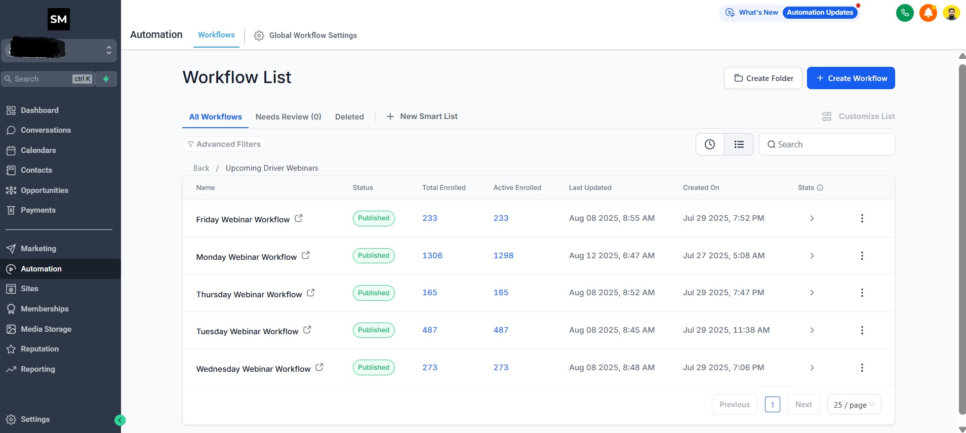 Using GoHighLevel, we automate follow-ups, reminders, and pipelines so every lead is nurtured and guided toward booking automatically